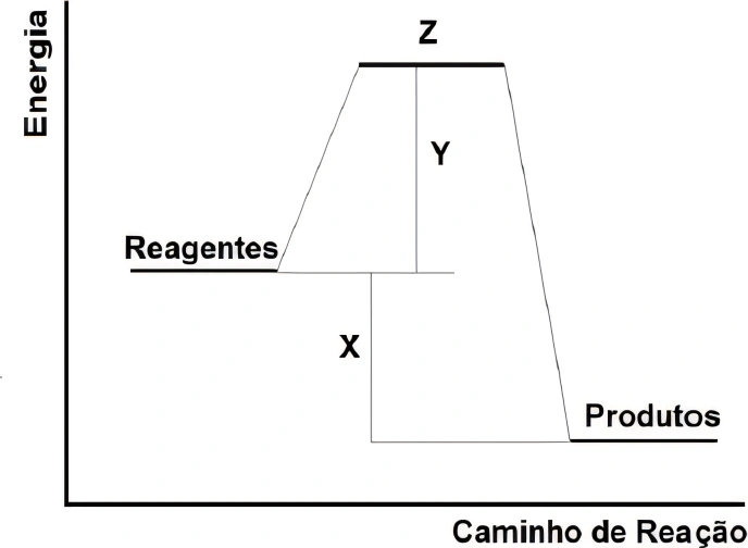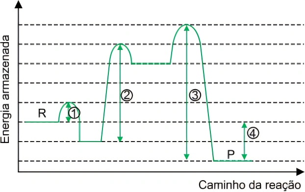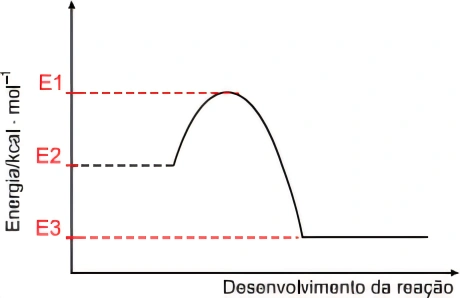 De acordo com o gráfico, essa reação ocorre em e representa a energia necessária para que a reação inicie.