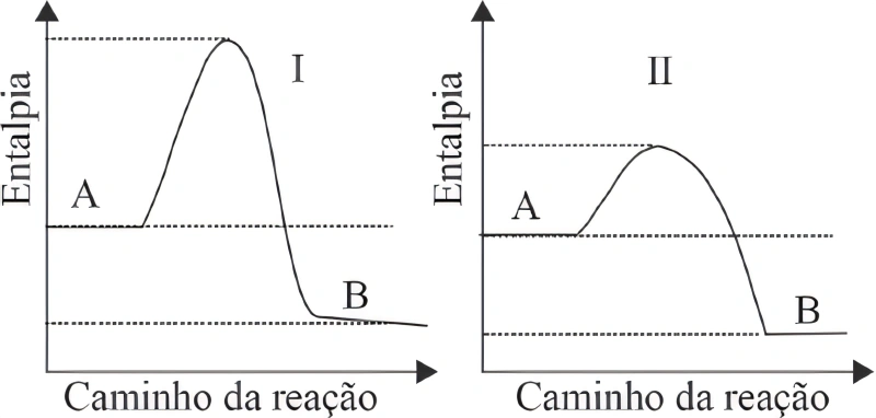 QuímicaUnirG2015Assinale a única alternativa correta com relação aos diagramas de energia (I) e (II) para a reação A → B.