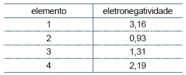 QuímicaUEA2015A tabela mostra os valores de eletronegatividade (escala de Pauling) de quatro elementos químicos representativos, todos localizados no terceiro período da Classificação periódica.