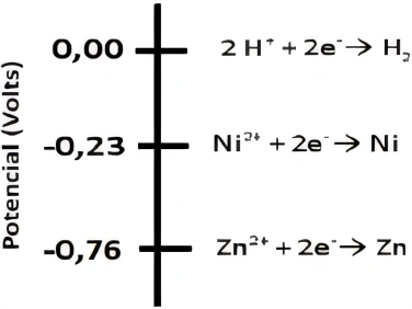 Ni2+ (aq) + 2e--→ Ni (s) Eo= -0,25 V