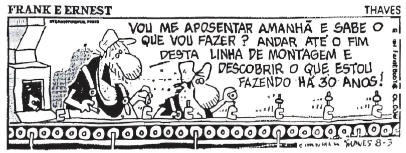 SociologiaUPE2013A charge a seguir representa aspectos de um modo de produção. Sobre esses aspectos, assinale a alternativa que aponta uma das características desse modo de produção econômico.